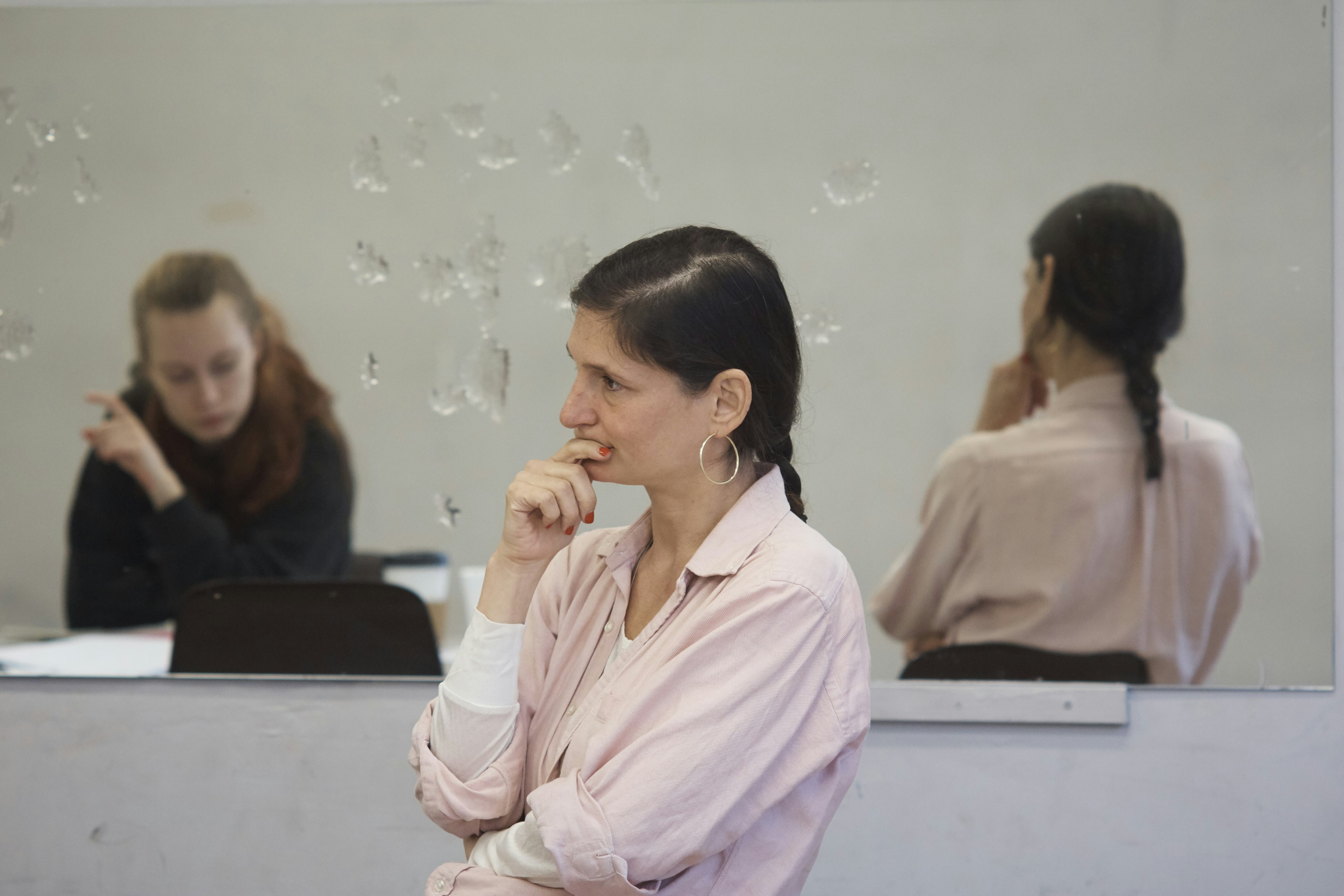 Artist and novelist in rehearsals preparing to direct her first film 'Boat' which is a play that explores